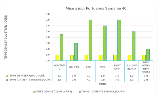 Le temps d’attente pour amarrage des navires à quai est en moyenne de 1 jours, le temps d’attente pour chargement sur rail est en moyenne de 7 jours.