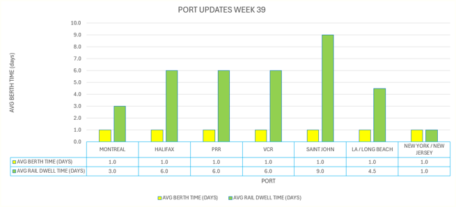 Vessel berth wait time is averaging 1 days, Rail dwell time avg 9 days