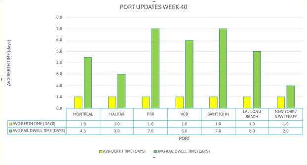 Vessel berth wait time is averaging 1 days, Rail dwell time avg 6 days.